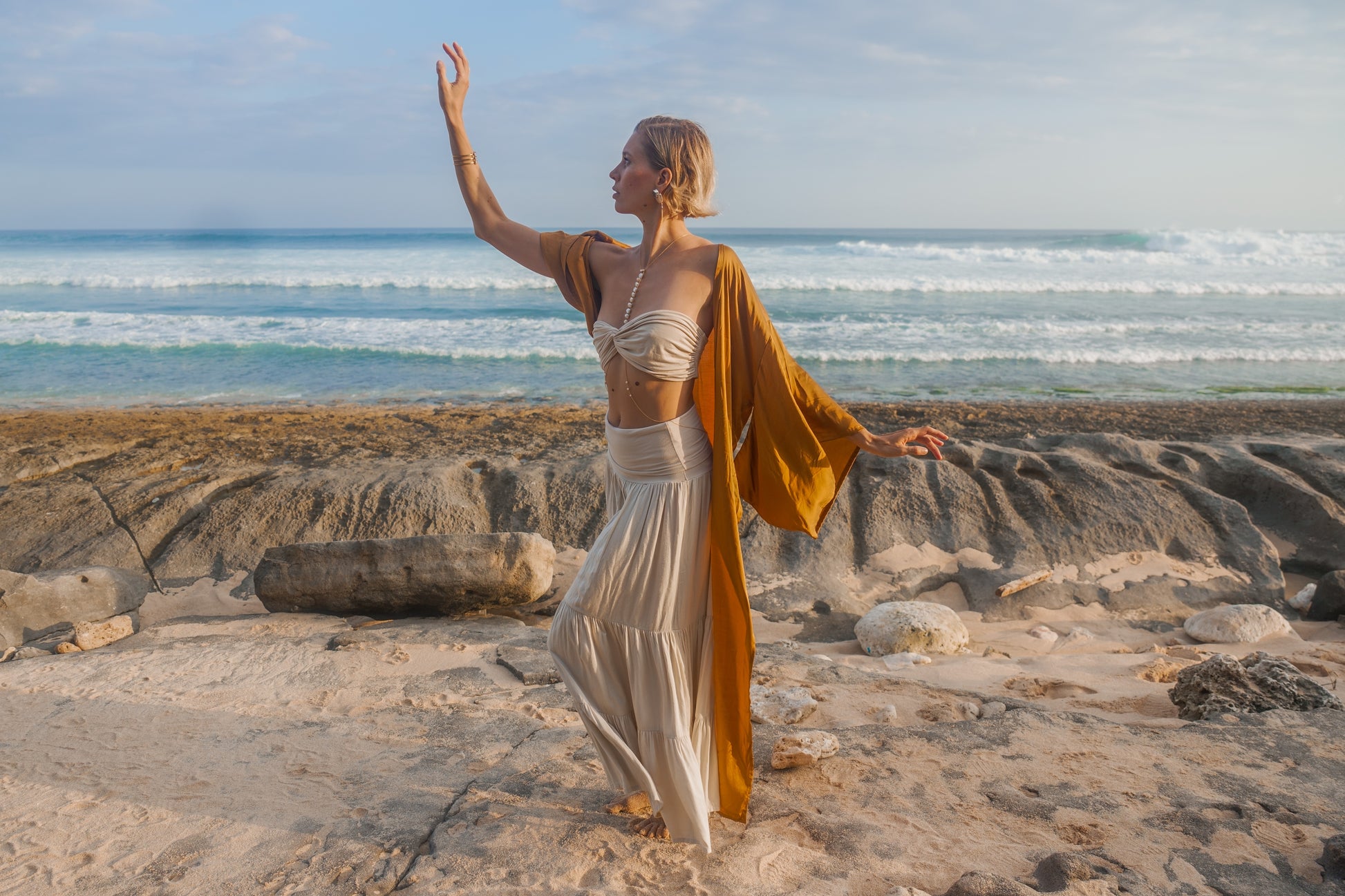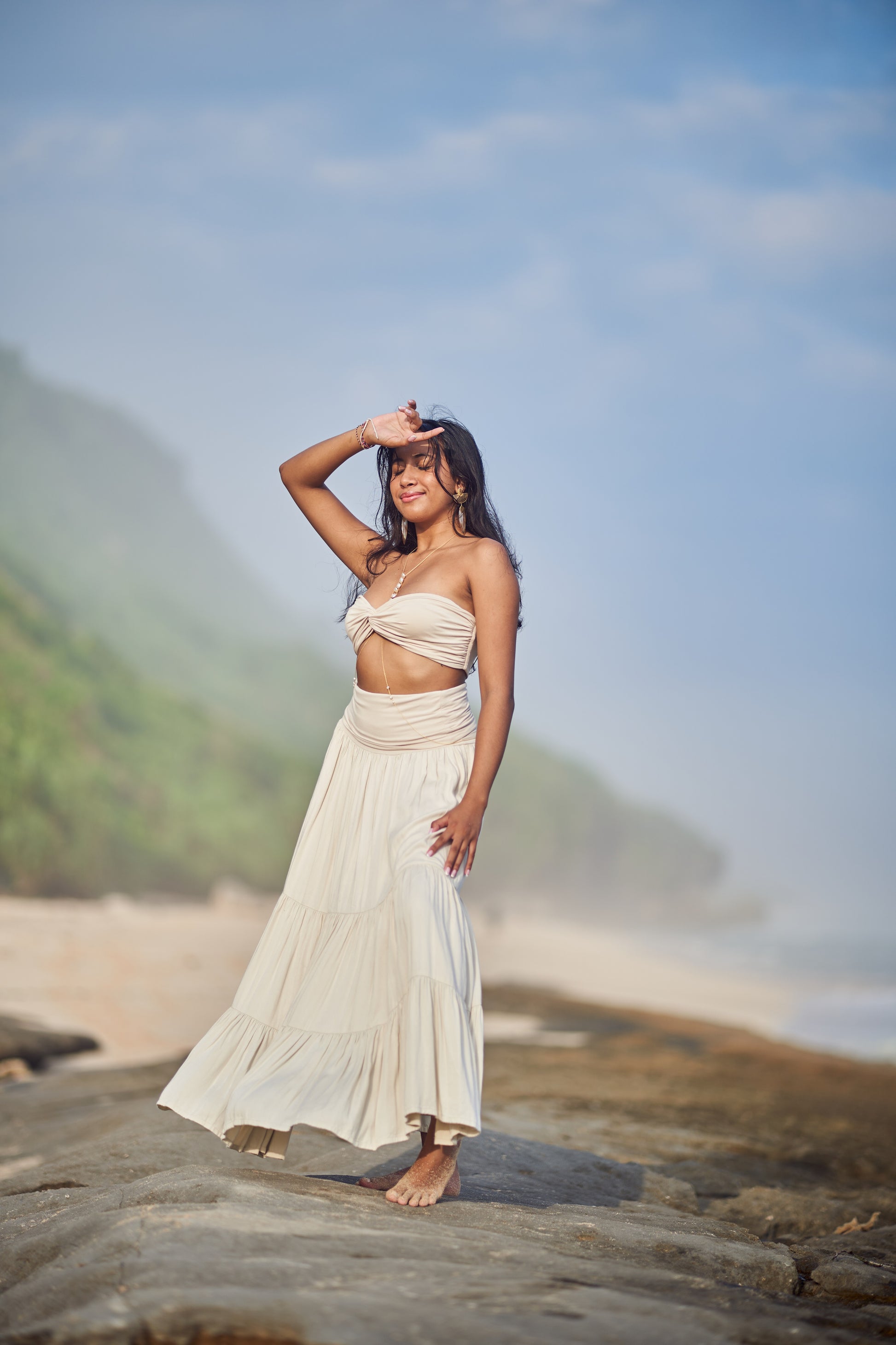 - Details: The skirt features a band made from our ultrasoft plant-based viscose, derived from cellulose pulp from sustainably managed plantations of fast-growing acacia and eucalyptus trees. The band enhances its luxurious appeal and provides a comfortable fit. The skirt flows beautifully, offering both style and comfort for any occasion. Additionally, the versatile design allows the skirt to be worn as a dress, providing two elegant looks in one piece.
