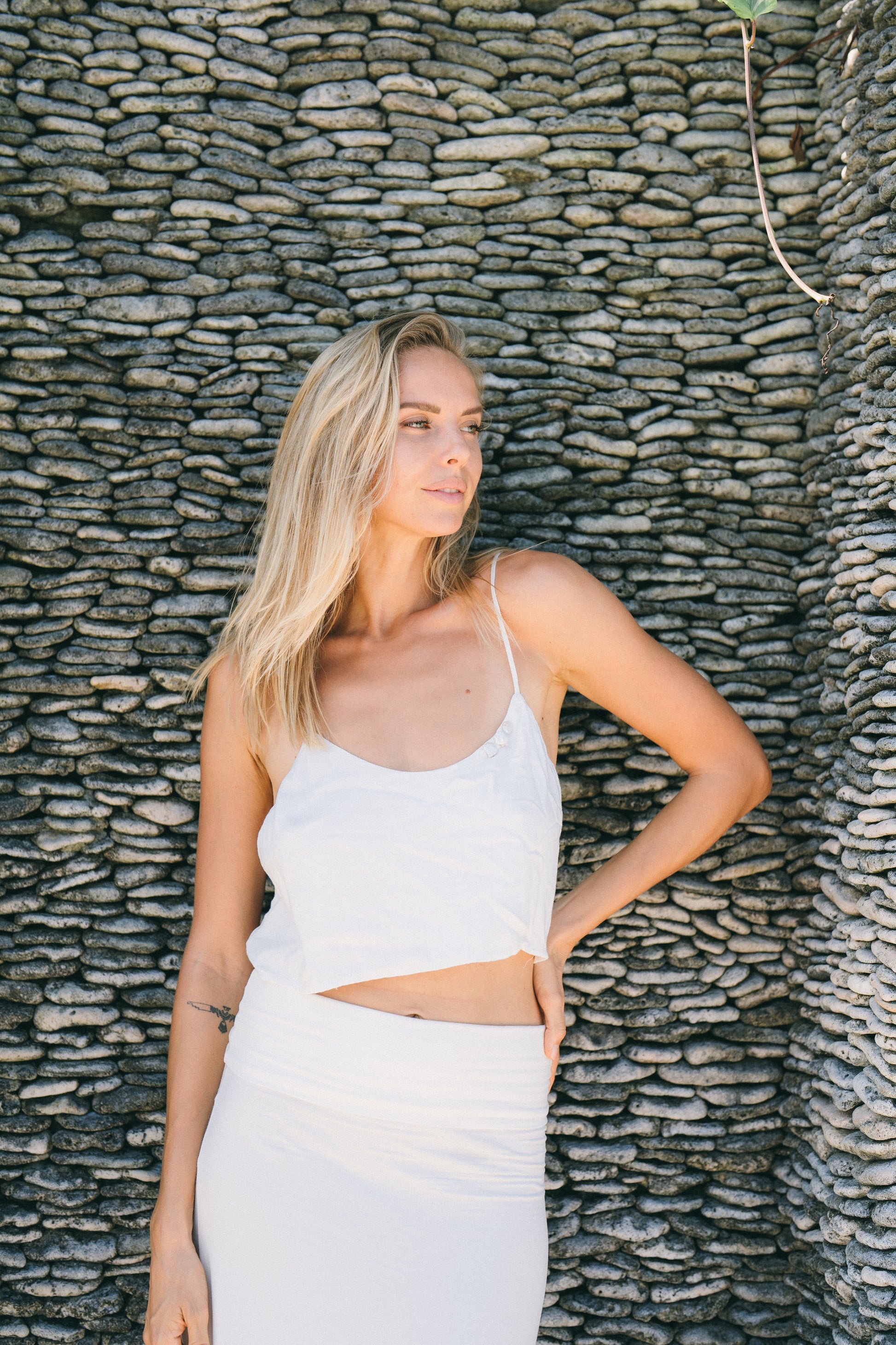 - Details: The top features adjustable shoulder straps, allowing for a customizable fit and added comfort. It has two layers, providing additional coverage so you can wear it comfortably without a bra. Its simple yet elegant design makes it versatile for various occasions.